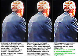 Dr.Robert M. Nelson, ein bekannter Wissenschaftler (der NASA) auf dem Fachgebiet der Bildanalyse hat die bekannten Bilder von Bush's Rückenfalte einer genaueren Untersuchung unterzogen. Er kam zu dem Schluss, dass es sich bei der Form auf dem Rücken um ein "Gerät" handeln muss.